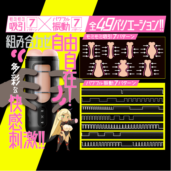 ぷにあな電動オナホの第2弾は、揉まれる吸引刺激7種類×ハイパワー振動7種類の合計49アクションを楽しめる♪内部素材には、柔らかく安全性と耐久性に優れたエラストマーを使用。