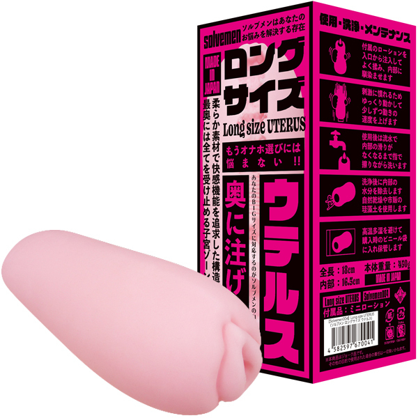 「底を突き破ってしまう…」という長い男性のお悩みに、イボ×ウテルス構造のロングオナホ(ローション付)。