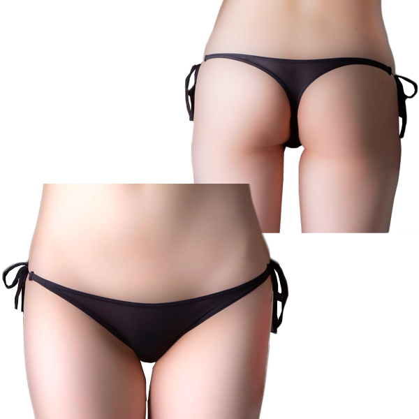 うっすら肌感を感じられる、日本国内の工場で縫製され、肌触りが良く伸縮性と透明性の高い国産のストレッチ生地を使った横ヒモタイプのTバックショーツ。クロッチ部分に縫い目のないハギ無しタイプです。