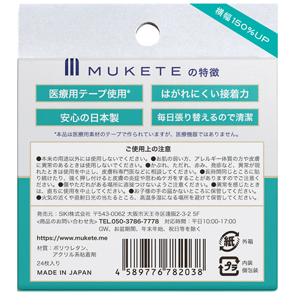 従来性より横幅1.5倍UP!!よりサポート力を強化しました。安心の日本製。手軽に安価で始めたい方にオススメです!テープなので使用後は捨てるだけなので清潔かつ使いやすい。透明テープで自然な印象に。