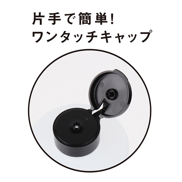 片手で簡単に開けられるワンタッチキャップ!ボトルが柔らかくローションが出しやすい!用途に併せたボトルサイズで衛生的な使い方。