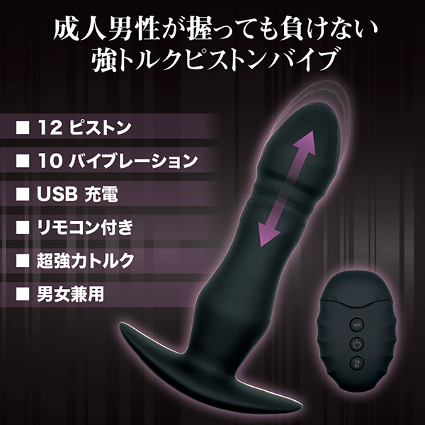 かつてないトルクが自慢のピストンと強力モーターによる振動機構。ハイグレードシリコンを採用した素材は先端がプニプニとした弾力でリアルさを演出。絶妙なサイズ感が男女兼用で快適に楽しめます。底部が浅く外出時でもスッキリ収まる形状です。本体充電時間:2時間、連続可動25分、USB充電器付き