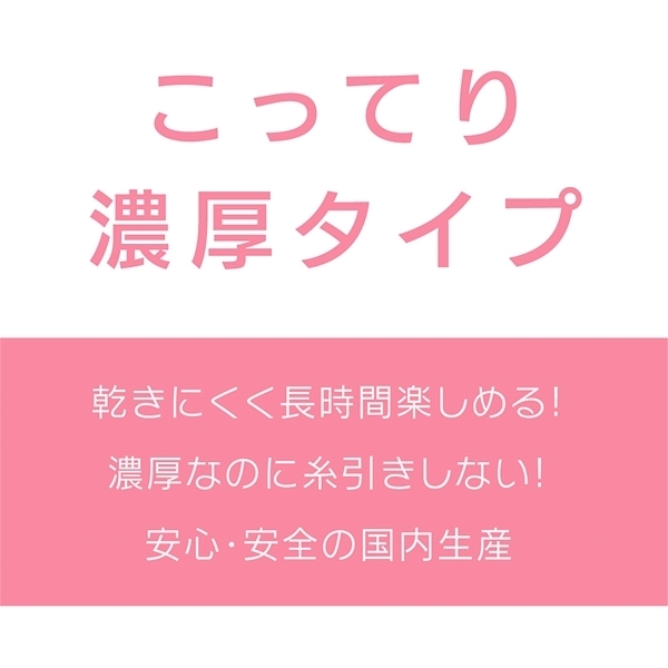 Ag+でエクセレントローションが新しく生まれ変わりました。銀イオン配合で消臭・抗菌・除菌もでき、より衛生的に使用できるようになりました(消臭・抗菌・除菌は人体に対するものではありません)。こってり濃厚タイプは、乾きにくく長時間楽しめます。また、濃厚なのに糸引きしません。狭い穴のホールにも注ぎやすいノズルキャップ仕様。超大容量600ml。安心の国産素材&国内生産。