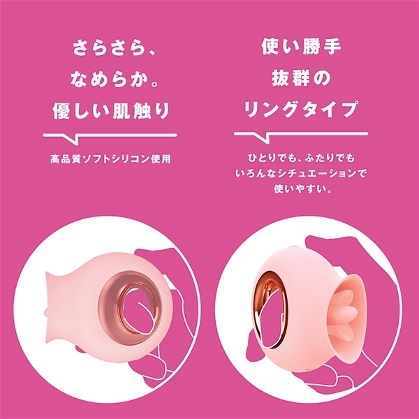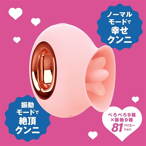 超・愛を感じる舌舐めローター!ぺろぺろ9パターン×振動9パターンの全81バリエーションの超絶テクニック!ノーマルモードで幸せクンニ!振動プラスで絶頂クンニ!持ち手は、使い勝手抜群のリングタイプ。