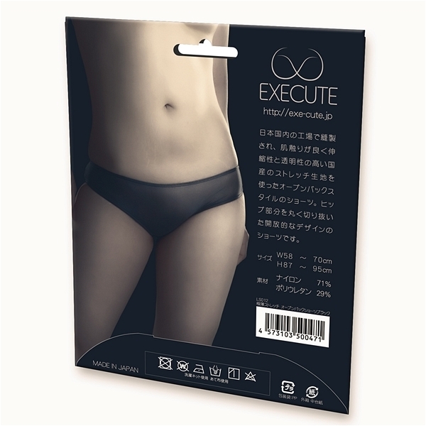 日本国内の工場で縫製され、国内縫製によるしっかりとした造りと伸縮性と透明性の高い国産ストレッチ素材を使った肌触りの良いオープンバックスタイルのショーツとなっています。