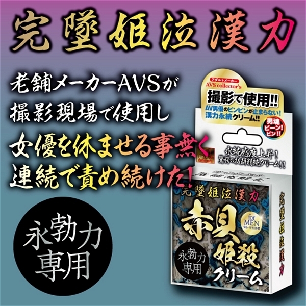メーカー撮影ご用達!男性ビン起ちロングラン永勃力上昇専用クリーム!男のそそり起つアソコに適量をまんべんなく塗り丁寧にマッサージをすればいつまでもビンビン!貴女もびっくりいつまでも続く快楽の世界!安心安全の日本製。内容量:10g