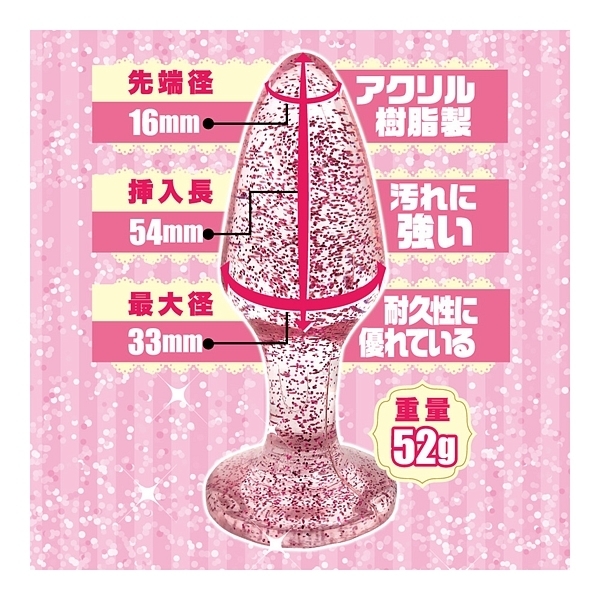 ラメ入りがとってもキュートなキラキラ系アダルトグッズ、「ラメ入りア●ルプラグ」!気分はまるでパーティー♪透明ボディの中には、キラキラのラメがみっちり入りました。