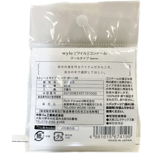 コンドームは避妊のためだけのアイテムではなく、性感染症などのセックスすることでうつる病気から、大切な身体を守る医療機器のひとつです。「コンドームの売り場に行くのが恥ずかしい」「店員さんに見られたくない」といったこれまでのイメージを覆し、女性が手に取りやすいコンドームを作るために、女性が主導してデザイン・開発した女性が本当にほしかったコンドームです。●2個入 クールタイプ