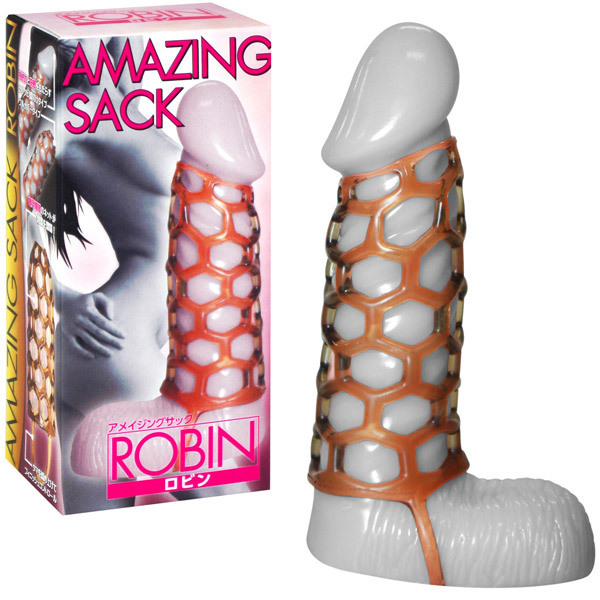 亀甲模様の網目が竿全体を捕らえて持続力アップ!大人気アメイジングシリーズのペニスサック。