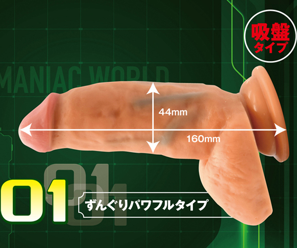 こちらの「マニアックワールドZ 01」は太さは44mmと迫力満点!最大16cmと少々小ぶりながらも本物っぽい見た目がエロく、絶妙な弾力と柔軟性、硬い芯と柔らかな皮のリアル2層構造で、どれをとっても本物のペニスそっくり。